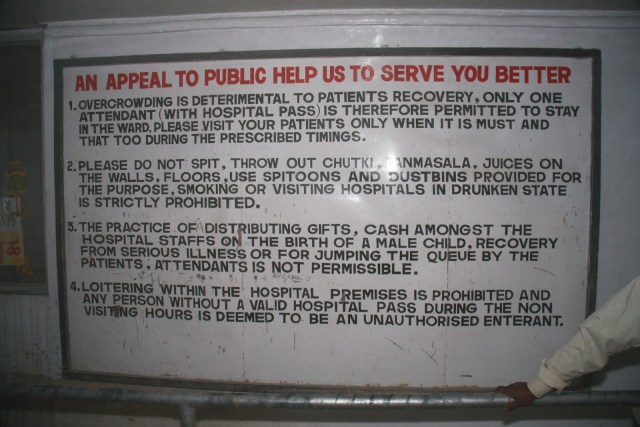 A bigger problem though was that when I woke up this morning, I had a bad case of diarrhea. That should not be too much of a surprise after eating in Delhi the day before yesterday but I had to get that fixed quickly. I was reminded of the altitude acclimation problem though when I went to put on my shoes to walk to the owner’s office. Dang, I had to rest after tying each shoe! At any rate, the owner told me that the normal hotel doctor was in the Nubra Valley, waiting to see the Dalai Lama – just like we were planning to do. The second option he suggested was to go to the local hospital to see a doctor. After a nice 2km trek (squeezing my butt the whole way), I got to the registration desk of a small one-story building. It would take me Rs2 (about US$0.05) to get registered. I only had Rp100 notes so they waved me through without paying, explaining it was too hard to give me change. I tried to say “keep the change” but there was a big “no bribery for faster service” sign next to the desk and they told me to go to room 14. I waited there for about 30 minutes before my turn to go in to see the doctor. Once inside his room, there were also about six assistants and two other patients. The assembly line of blood pressure, pulse and temperature takers went smoothly and the doctor gave me my prescription. I next headed for the dispensary and got half the medicine I was prescribed. They explained that I needed to buy the rest in a chemist shop (drug store). Huh? It turns out that I never needed to see the doctor after all. The chemist can dispense any drugs or antibiotics as long as you can tell him what you are suffering from. After the dispensary, I went back to the registration desk and asked for my bill. After initial confusion, they explained that the Rs2 covered not only the registration but also the doctor visit and medicine. Wow. I felt bad so I gave them the Rs100 note and asked them to let the next 49 patients in for free. It’s easy to be generous when it only costs you US$2.