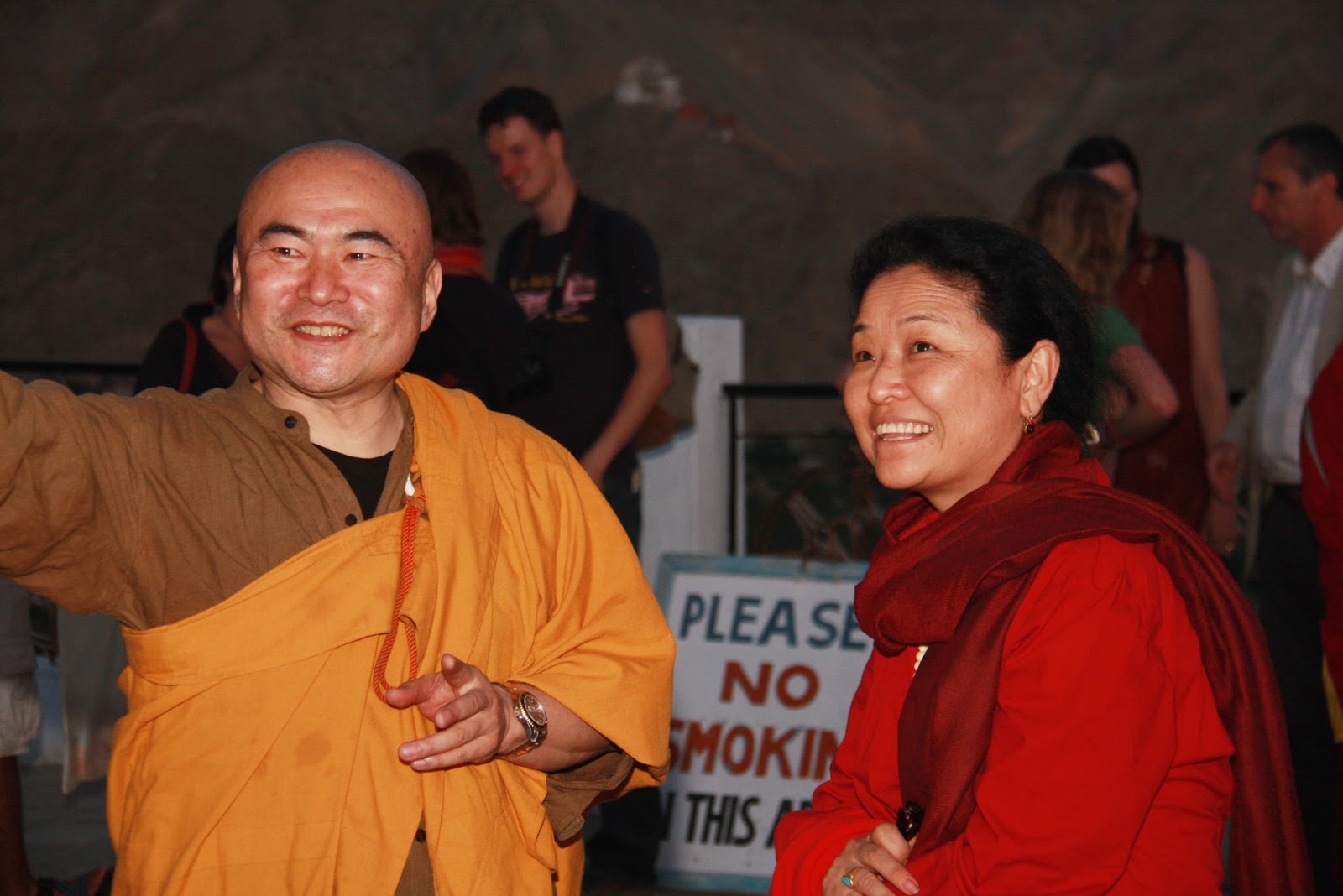 Later in the day, for views of the sunset over the mountains, we visit the Japanese Shanti (Peace) Stupa. It is on a hill, another 200m above Leh village, where we get some pretty good views below as well as a close-up look at this simple, yet lovely building. As an added bonus, Khandro-la introduced us to Bhikshu Gyomyo Nakamura. This Japanese man is not just the resident monk; he built the stupa back in the 1980’s after giving up the life of a musician. Well he hasn’t given it up completely. He recently released an album of Dharma songs. He sang for us and also plugged his books. He seemed like a cool and interesting character but all conversation had to be translated for us.