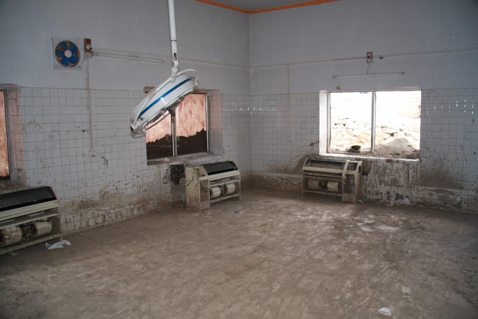 Fast forward to this morning…. I was volunteering at the LBA again and the pickup truck I jumped into took us to the same hospital where I was treated last month. It was nice to repay some more of the debt I owed them but it was shocking to see the place again. Despite many volunteers working for the past two weeks, as well as the hospital’s own workers, several rooms were still a meter deep in mud. Because the hospital was so close to the mountain that made the tragic “donation”, the mud was the thickest, wettest and foulest smelling I had encountered. Working all day, about 20 of us could not even finish clearing two four-bed rooms. I walked through the hospital at lunch time and everything they had was a total write-off. Air-conditioners, beds, desks, medical equipment, doors, windows, everything was caked in mud or broken and no longer usable. Basically, the walls, ceiling and floors were the only things salvaged. The emergency room had been cleaned enough that they were painting the walls. The clinic area where I was treated was in the finally cleaning stage before re-painting. The wards, operating theatre, storage areas and some admin offices were mostly cleared of the deep mud but a layer remained and the muddy equipment, furniture and broken doors, and air-conditioners also needed to be removed. Outside, bulldozers were busy trying to clear the mountains of rubble and mud that had been shoveled out from inside. All very sad.