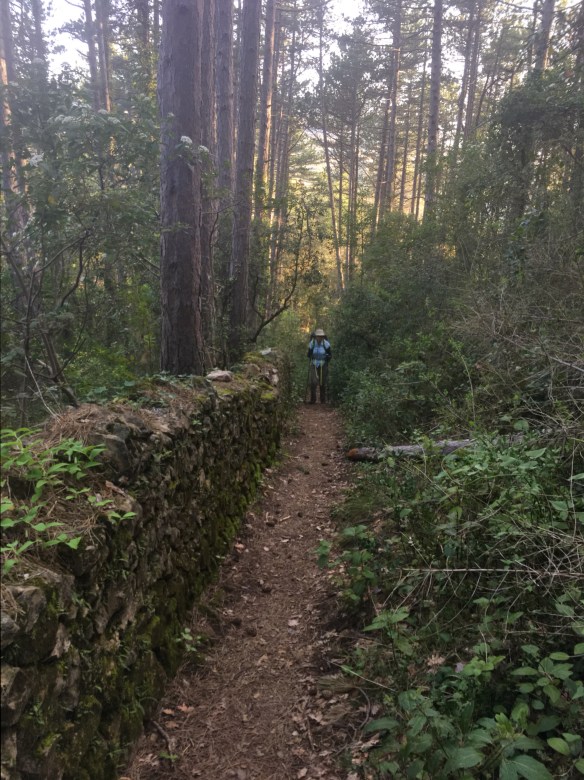 We ARE on a Camino! We walked a beautiful, varied full-length trail today that was very challenging but rewarding as well. It was the most Camino-like walk this trip even though we only briefly exchanged hellos with one French couple we had not seen before and had a nice chat with a French day-hiker. We also saw the French couple from yesterday but they were ahead of us and we saw them detour to the GR7 route instead of continuing to walk the Chemin d’Arles.
