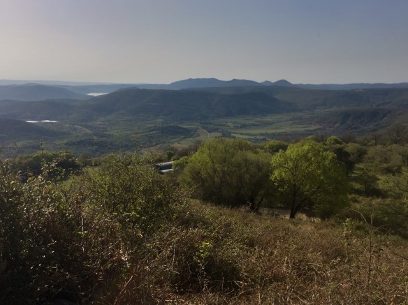 After crossing the river along side of Lodève, we were immediately on a lovely small forest trail and the climbing began on a rocky terrain. This is a new route, different from the guide book but fairly similar to one of our GPS tracks. It was cool in the forest and a great start. After a few kilometers, we dropped out to a short road that led us to a park entrance where the steeper climbing started. This was thankfully, sort of, on a better terrain, basically a wide packed gravel trail. It was good in that we could move faster but tougher that the next 9km or so was a steady shadeless climb.
