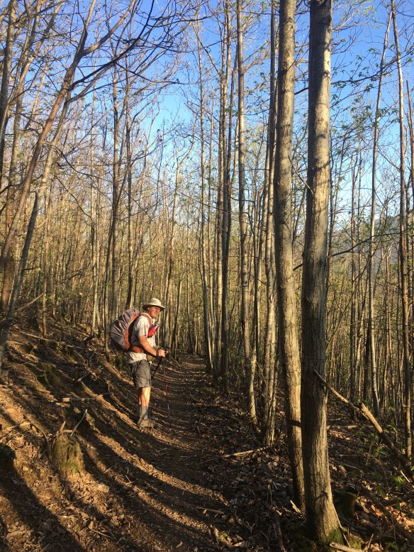 In one very step ascent in the forest, there was a switchback trail that was perfectly hidden. As a result Melanie and I continued straight a few hundred meters further before wondering why we didn’t see any more blazes. After checking the GPS, we realized our error, turned around and managed to stop the French couple, Daniel and Anna-Marie, from making the same mistake. That was the only place we wasted a step today.