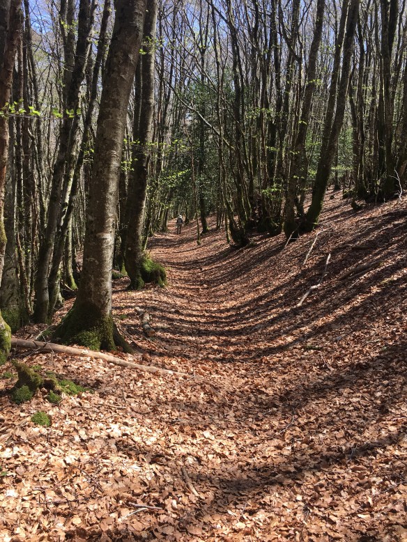 Daniel told us at the communal dinner that he lost Anna-Marie in the forest today and I can see how that was possible. The last climb of the day was through a forest, up a zig-zag trail between the trees. The problem was that there were so many leaves on the trail, it was near impossible to stay on the correct trail, much less “any” trail. They were a little behind us but separated from each other and Anna-Marie just kept zigging when she should have zagged. It took them a while and a lot of yelling to reunite. With Melanie, she is rarely out of my sight so if one of us is lost, we are at least lost together and we both have GPS on our iPhones, just in case.