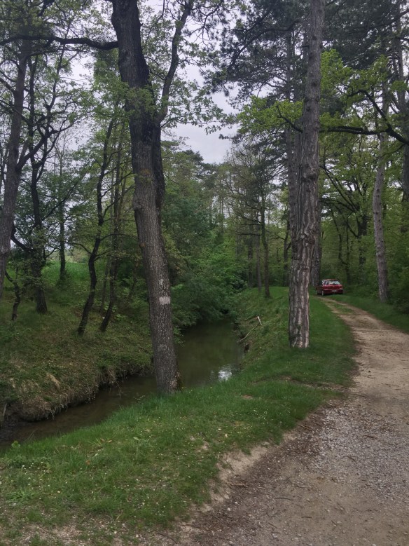 We walked on the lovely canal trail only about 1.5km before we (I!) decided to shortcut through the village of Saint-Paulet. It just looked on the map as a small village but my bet was that it was a nice one. It turned out to be on a hill so I traded a climb on road in exchange for a slightly longer, flat trail on dirt with a nice view of the canal. The village definitely wasn’t worth it and the highlight was to get to see a young drunk guy, leaning out his car door, retching in the street while his friend laughed hysterically and live-streamed the show to some other friends. I started to laugh at the stupidity of youth but then I realized that the guy throwing up was the driver, not the passenger. Now I was just angry at the stupidity of youth. I should have stayed on the canal.