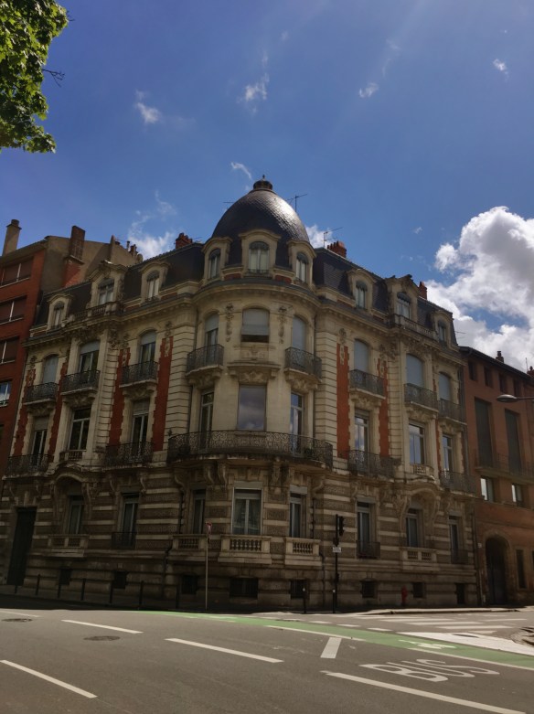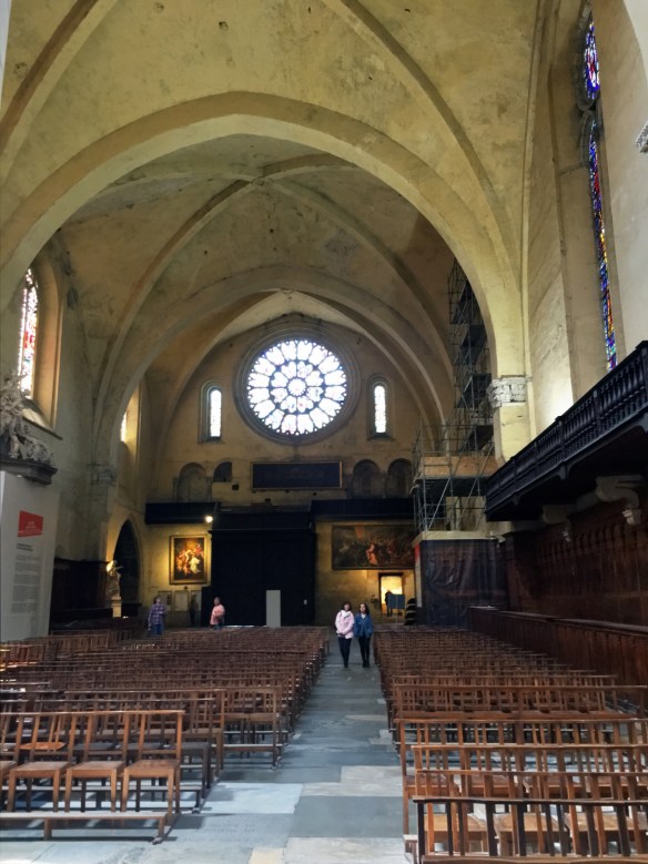 We had three stops today which accounted for the lack of speed. Even with a 9:00am departure, we had to stop as a room would not be ready for us so soon in Toulouse. We had a juice at the first restaurant on the canal and a hamburger from the food truck parked next to the canal at about the 14km point. Finally, we stopped in the Cathedral of Saint Étienne in Toulouse. I provide the photos of that below so that Jerry can show his son a church that isn’t shaped anything like a cross. The cathedral is a zillion years old and apparently was started as two different churches, neither of which was completed, so they just connected the two into a rather odd shaped church.