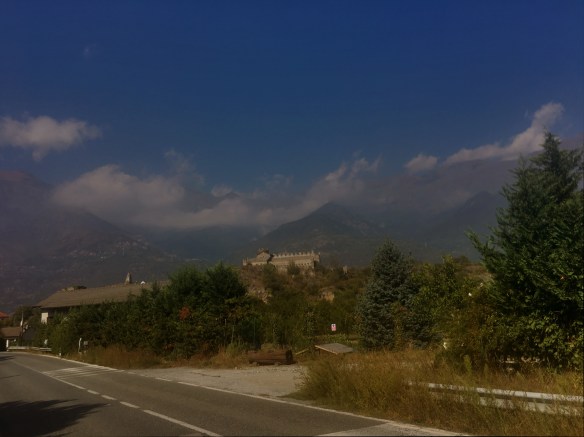 We were then “invited” to “shortcut” over the mountain to the next town, Chiusa di San Michele, via the very impressive Sacre di San Michele. The Sacre could be seen on the mountain top from even before we reached Avigliana. The “shortcut” would have been an extra 2.6km and something like an 550m climb. We declined. Vehemently. Without further consideration or regret. The road around that mountain was along the old road to France that was no longer used except by runners, walkers, hikers and bicyclists. It was flat. And shorter. And enjoyable.
