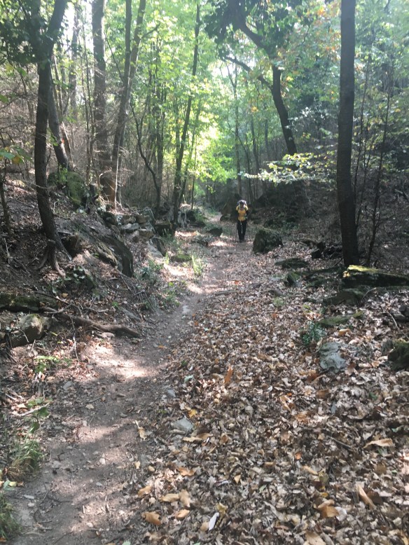 After a quick walk through some nice streets, then along a park that contained the Augustus Arch, we were directed to go up a hill through a gate marked “private – no entrance”. Hmmmm…. lets go anyway since we already climbed a small hill to get to the arch. This was exactly at the 10km point of the day so it was easy to track our progress. This was the start of the mountains and we got shamed. The trail was steep, rocky, and hard to walk on. The first kilometer too us 30 minutes to navigate. The second and third ones were 21 and 22 each. We were dying in the heat. For the first 10km, we averaged about 13.5 minutes/km. This was going to take forever.