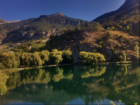 Thankful that we had not taken that route, we almost immediately turned left off the quiet road onto a bridge over the river. Now on the east side of La Durance, we walked only 100m before turning right onto a trail next to the rail tracks. We could only follow this trail about 1km until there was a pathway under the rail line that we needed to take. This lead to the little village of La-Roche-de-Rame where we stopped in a restaurant for a drink and toilet break. From there, heading south, there was a 1km stretch along the N94 but the first half of that could be avoided by taking the “Le Lak” path through a park. The second 500m of the national road was straight and had a wide shoulder so it was safe.