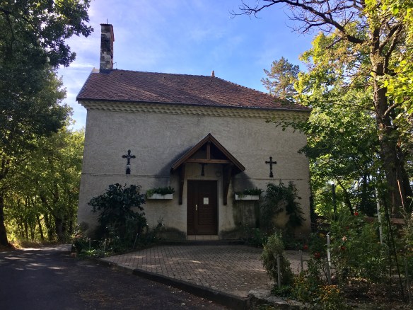 There were quite good sections all the way to the N85 (our new highway to hate) but a little too much of it was blacktop roads. One of the highlights though was passing the small Chapelle Saint-Jacques de la Tourronde. Mass is at 9am on the first Sunday of every month so we were 22 hours early. On the side of the chapel was a prayer to St. James for pilgrims that I have to get translated. There was also some recognition of its position on the pilgrim route although I wish it only mentioned the Via Domitia and not the GR653d. Instead of waiting for mass, we continued down to cross the footbridge over the highway.