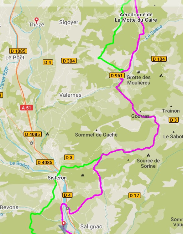 We walked from Thèze (top left) to Les Bons Enfants (blue arrow at bottom)
