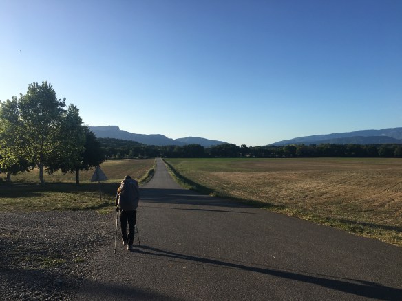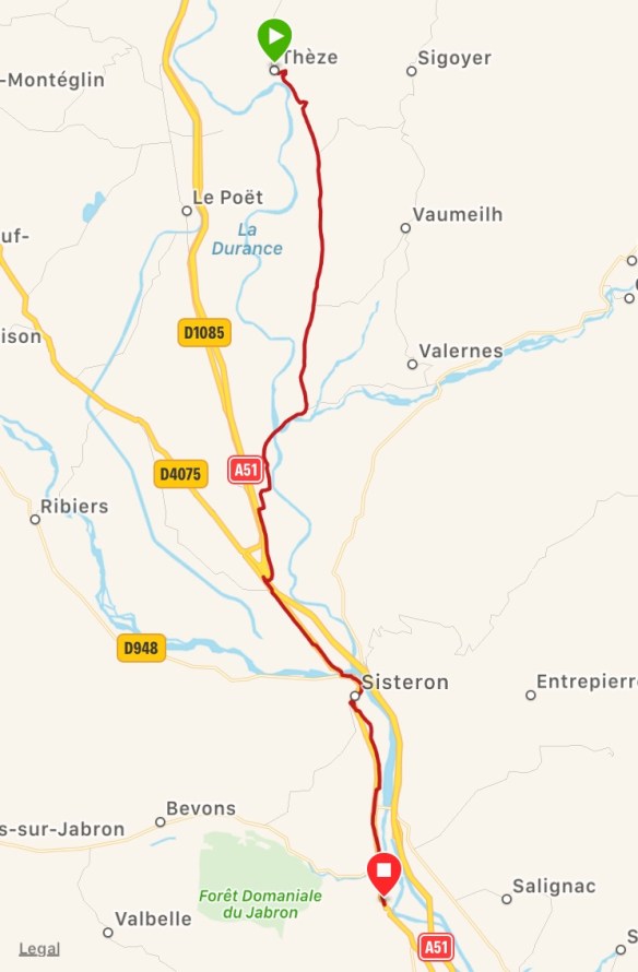 This took us into Sisteron, crossing the Buëch River below the mighty Citadel fort that protected the town and Via Domitia travelers in this narrow gap in the mountains where the Durance passed through. We spent almost two hours there having lunch, wandering around and visiting the tourist office. We normally would not do that in mid-walk but our hotel was only 5km away and didn’t open until 5pm.