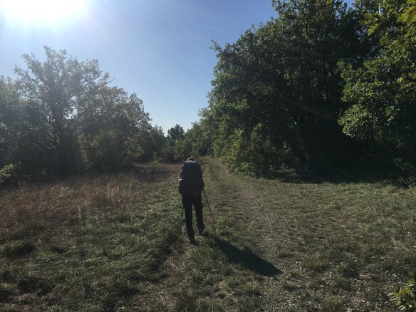 Once again, we were walking on the D4 but this time southward. It was a bit busier than Sunday but still a tolerable average of seven cars passing us for every kilometer we walked. There weren’t any motorcycles or bicyclists either. For the first section, it was a little hard to find places where we could walk on a gravel or grass edge of the road but that got much easier further south. Still no blister (knock on wood).