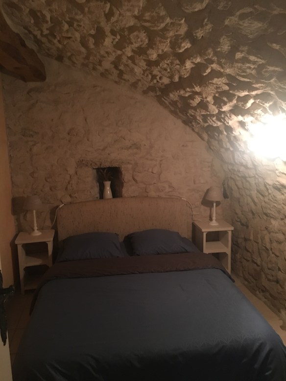 It was a pretty simple final three kilometers to Mane and we checked a few restaurants out along the way. They are open tonight! We had to wait an hour for the B&B owners to get home and let us in but that didn’t set us back nearly as long as dealing with trying to get into their wi-fi, figure out how to operate the washing machine and dealing with the electricity that keeps going off. It’s a 200 year old house though so I guess it will have issues. I think that our apartment is in the old wine cellar that has been converted into a one bedroom, with living room, kitchen and “nearby” bathroom. We have to duck as we walk since the rock roof is curved but at least we have a bed and roof over our head. [edited to add one day later: when we passed by a restaurant earlier, we stopped in to ask if it was open for dinner. The owner said it was and asked if we wanted to make reservations. “In this tiny town?”, I thought. No, we will just come back later. At 7pm, we walked in and only two tables were taken. The snootiest waitress I’ve met in France explained that they were fully booked with many people reserving tables at 7:30pm. She suggested that the bar down the street might be able to make us a sandwich or we had to come back at 8:30pm. Ughh. We had a very late night.]