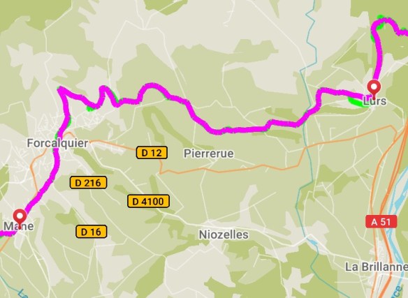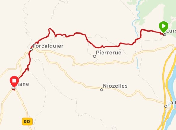 For some odd reason, the trail didn’t want to let us go into the beautiful town of Forcalquier. As we got close, the trail and GPS said that we had one more dog-eared detour to do which was away from town and then back. We ignored that and it meant we had a 1.2km shortcut. We were cool with that. I can’t imagine what that section would have given us over the nice direct route we took.