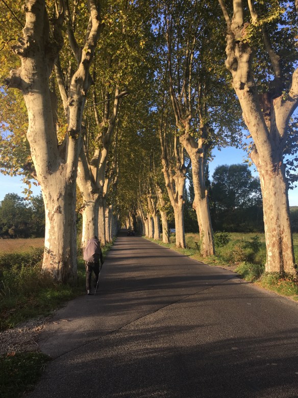 Due to the late night yesterday, and a longer breakfast than normal (talking with our lovely hosts), we started late today. We only got out the door at 8:30am. To think that many pilgrims on the more popular routes start walking at 6am or earlier, I feel a little lazy. We had decided to trim down today’s route to just under 25km from the expected 29km day (which a few days ago I thought was 23km!) so the first 1.5km section was down the D4100 out of Mane under a beautiful cathedral of trees. The road was busy with commuters but it really is a stunning road. We should have taken one detour in the middle of this to walk over a Roman bridge but I forgot to mark that on my map.
