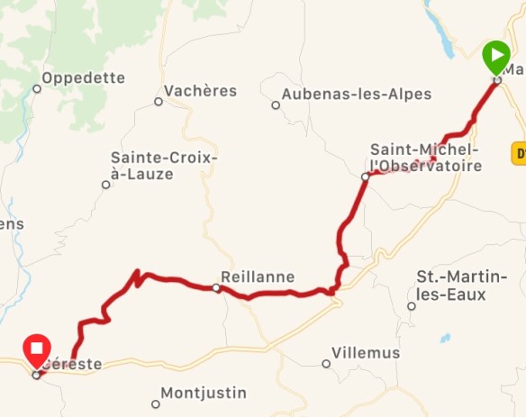 Once again, that last 10km to Céreste was mostly downhill but still a bit of a trudge on loose rocky paths. One highlight was walking around and in the ruins of the 14th century Prieuré Saint-Pierre. It was an important part of the Via Domita pilgrimage route back in the Middle Ages.