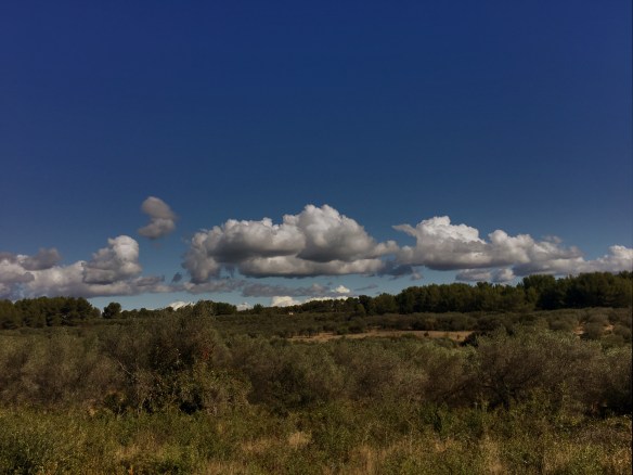 Last night, we kept waking up to the sound of thunder and the lashing rain against our window and the roof. We had seen the weather reports from the day before which called for rain today too. We figured our luck had run out on the last day on the Via Domitia (our final four days are on another route). When I checked the weather reports again at 5am though, it said that the chance of rain was supposed to drop to 60% at 8am and 30% at 9am, then cloudy the rest of the morning and sunny in the afternoon. Fortunately, that’s exactly what happened. By the time we started walking at 8:30am, there was still a drizzle and an ominous sky but I only changed hats and put on my pack cover. I didn’t even pull out my raincoat. By 9am, it had stopped raining for the day and the afternoon was as sunny and hot as advertised.