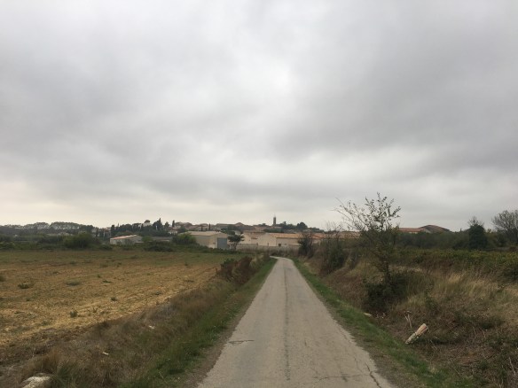 Just kidding. Actually, the trails between Saint-Christol and Saint-Geniès-des-Mourgues were quite nice but those were ones we chose, rather than the marked trail. Our route was slightly more direct than the Camino trail and on less roads. There were also very nice trails between the Mas de Rou winery and Vendargues on the marked Camino. Other than that, it was mostly road walking between fields, in suburbs, in commercial areas or in the city.