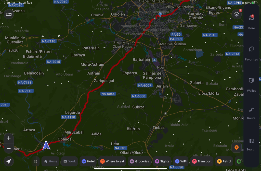 Pamplona to Puente la Reina, 22.0km, 6.75 hours, Hostal Rural Bidean, 62€