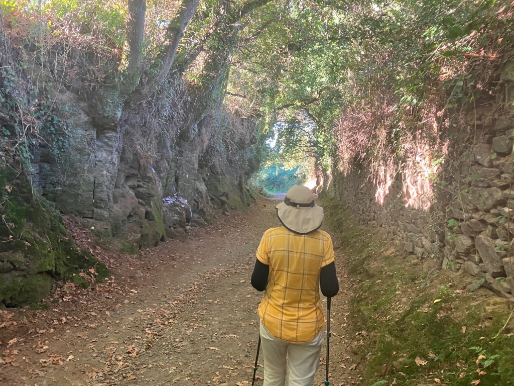 Random thoughts from the walk…. My phone counted 42,534 steps today, 161 floors of stairs climbed and 211 floors down. I beat my goal. In Arzúa, I was still thinking about how our slow start lead to a virtually lonely trail. I spoke too soon though because just as we entered town, two tour busses dumped out about 100 touragrinos right in front of us at the Arzúa sign. Most just wanted to have their photo taken next to the Arzúa sign, then half got back on the bus. The rest were giving it a try. When we got to our hotel in A Menal and finished our chores, we went down to the hotel terrace bar for a drink. There we found a rather large group of pilgrims congratulating each other about completing the long stage. They walked about 25km from Arzúa today but they did admit that yesterday was a rest day and they had started in Sarria. As soon as they cheered in the last of their group to arrive, they got on the bus and were taken back to their luxury hotel in Santiago. They will bus back tomorrow to do the last stage. Full credit to them. Well, at least 12.5% credit to them.