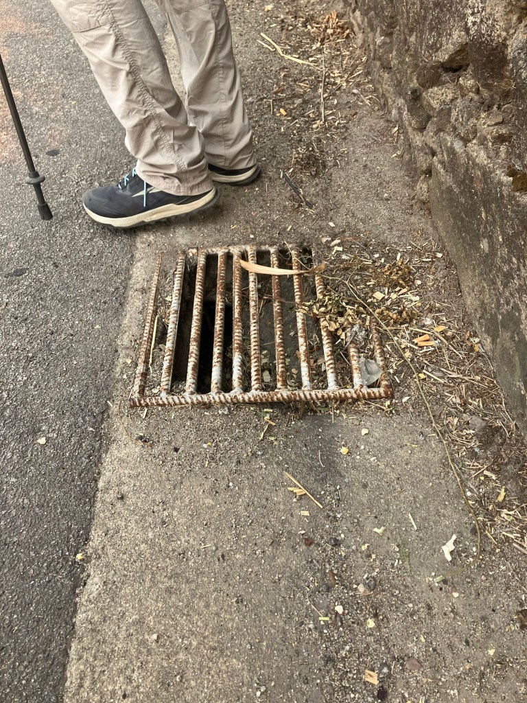 I n other news, I set a new record today. Last year I fell on the third day of the Camino. This year, I managed to beat that by a whole day. Fortunately, I didn’t end up with any cuts or bruises like a year ago but this was definitely more embarrassing and my back is now killing me. Tonight, I’ll be taking lots of Camino Candy (ibuprofen 400mg, also known as Vitamin I on The Way). So that everyone can have a laugh, I’ll explain what happened. Late in the walk, at about the 23km point, we were walking on a very thin road with a fair amount of traffic. It was on the marked Camino trail, what can I say? I was tired. Melanie was about 20m in front of me, walking on a thin, sandy “trail”, just inches from the road. I was was too but I was looking at an approaching car. That sandy trail also has some rebar grating over the drain below. My foot was caught in mid-step by the metal bar and I started to fall. I managed two or three steps to try to catch myself before all hope was lost. I broke my fall with my hand but managed to twist myself quickly enough to really land on my backpack. My iPad survived! My back didn’t. Melanie heard the commotion and ran back to try to get this up-ended turtle rolled over and back on his feet. It wasn’t working. Two men in a truck stopped in the middle of the road and it took both of them to get me up and out of the roadway before the next car came racing around the corner. Melanie did try to direct traffic but I’m not sure a driver would have really obeyed her waving arms. It could have been worse but it wasn’t. I’m thankful for that.