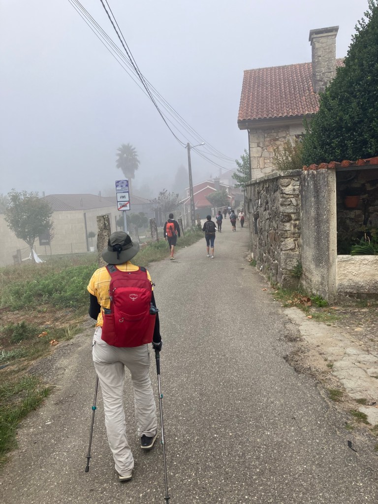 This is our ninth Camino and I still screwed up in the planning stages. I knew that Tui is only 115km from Santiago and the closest main town to start a mini-Camino of at least 100km, enough to earn a Compostela (certificate of completion). Becausei it will take most people five or six days from Tui, many Spaniards start this walk on Saturdays, Sundays or Mondays and begin there, taking just a week off work. There was a MASSIVE parade out of Tui today that we had to deal with, despite leaving very late, almost 9:00am after breakfast. I really should have planned better. Even last night, there was a crowd at our albergue getting into the Camino spirit with a lot of wine and a lot more noise until late. We are now on the crest of a wave to Santiago. I have just finished booking all our beds so we don’t need to race for one.
