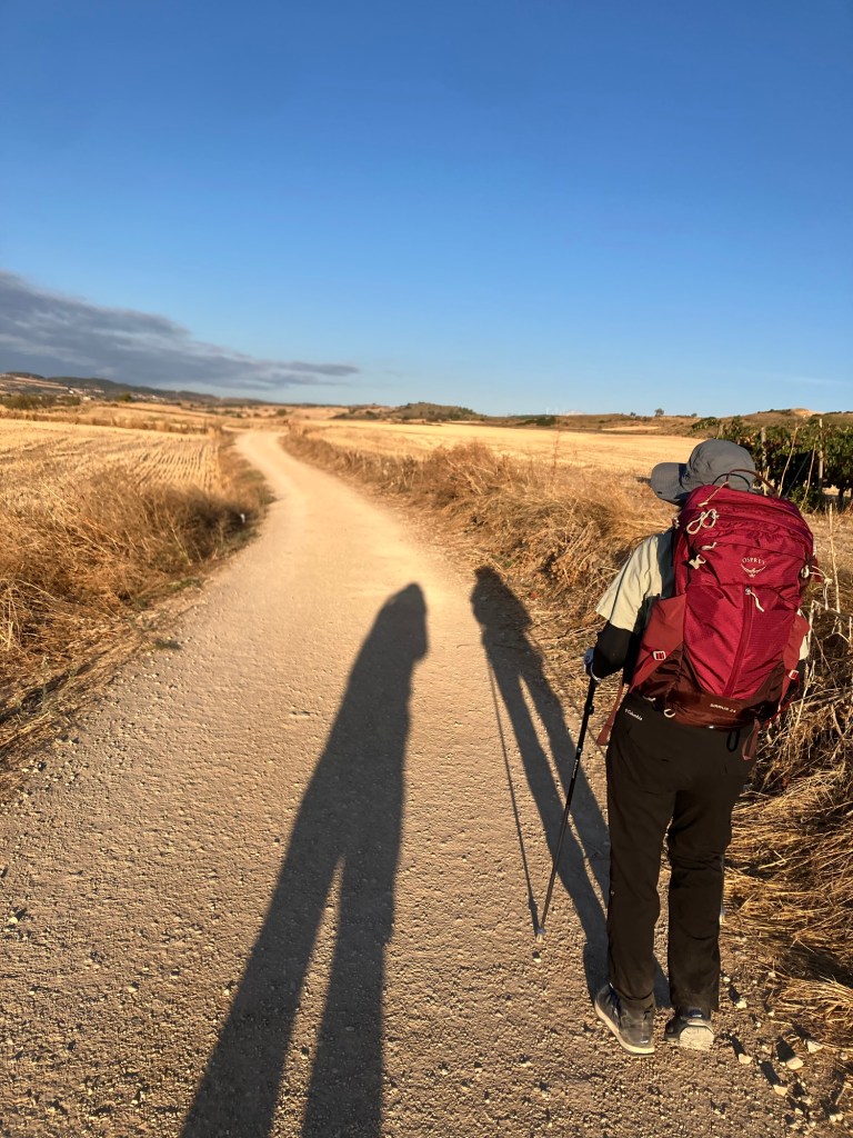 The final story of the day was that we bumped into g German Susi today and arranged to have dinner together. At 6’30pm, the only restaurant in town that was opened “so early” was our hotel’s restaurant. That was fine with everyone since we rarely get to eat in a palace. It turned out that the only person eating inside when we arrived was a 77 year-old American pilgrim named Art who Susi had previously met. We asked him to join us and as often happens, we get blessed by getting to hear about someone else’s Camino experiences and stories. We have already all agreed to meet up in Navarrete tomorrow night for dinner too. Slowly the pilgrim family grows. That said, collectively, we already knew about 90§ of the pilgrims who walked in the restaurant door after us. Right now, those are our Camino cousins, I guess.