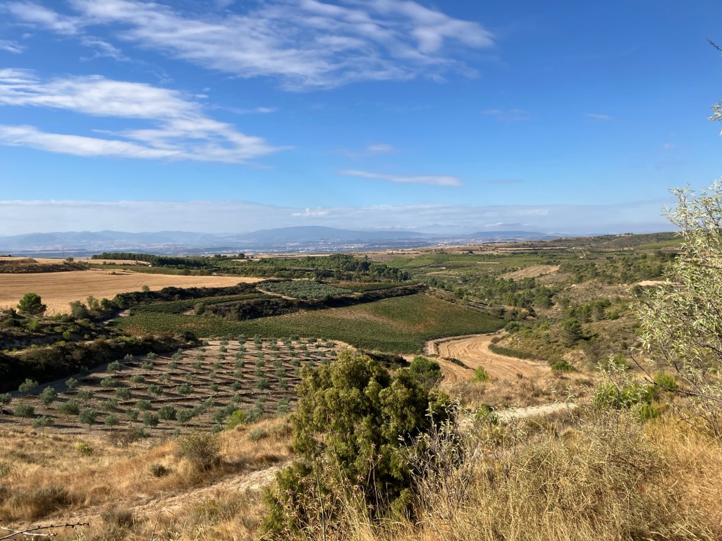 It was another lovely day for walking, although we had fewer clouds and less cool winds than yesterday but there were more flat sections. We still had some steep parts but they were quite short, rarely more than 50m high. We only had a total ascent today of 670m which is less than if we had walked halfway up the Pyrenees to the Refuge Orisson on the normal first day, a day we missed by starting in Pamplona.