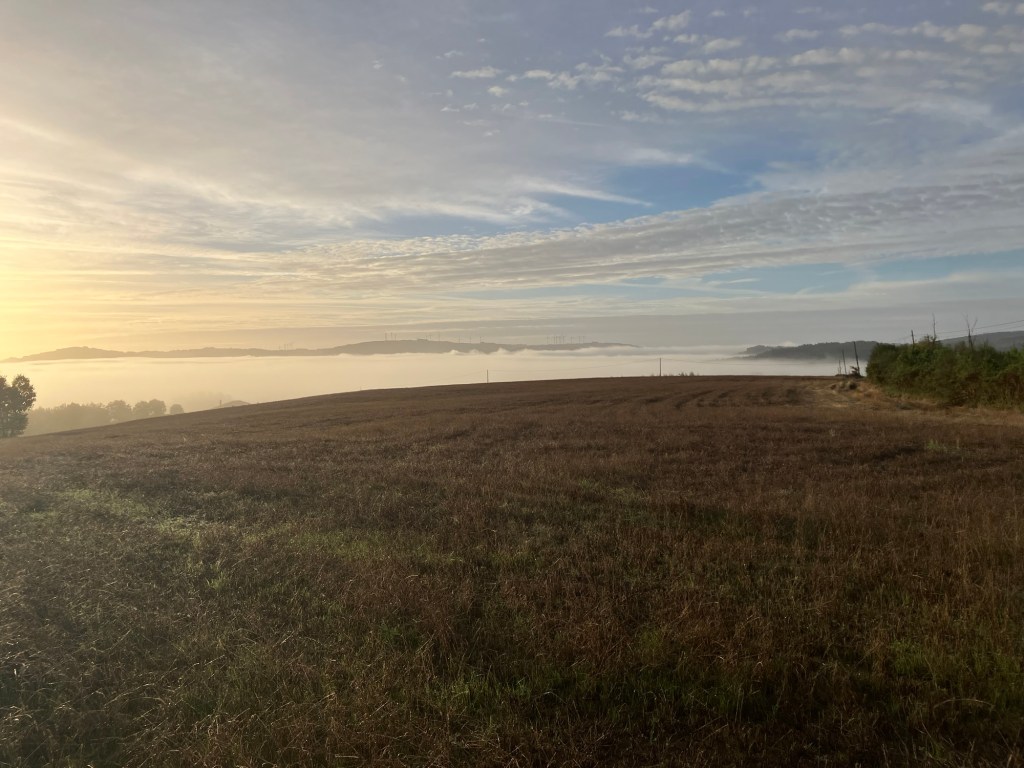 When we set off today, there was a thick fog that we walked through.  Later, as we had several steep climbs up 400m higher than the Portomarín bridge, we were walking on the hilltops and looking down at the fog where we were earlier.  Of course, even with so many pilgrims around, I still find a way to clear my mind and think of only what is important in the world. I came up with a genius-sized discovery that may win me a Nobel prize of some sort. Get ready, here it comes…. “Fog is just a cloud that has run out of helium”.  Who knew???