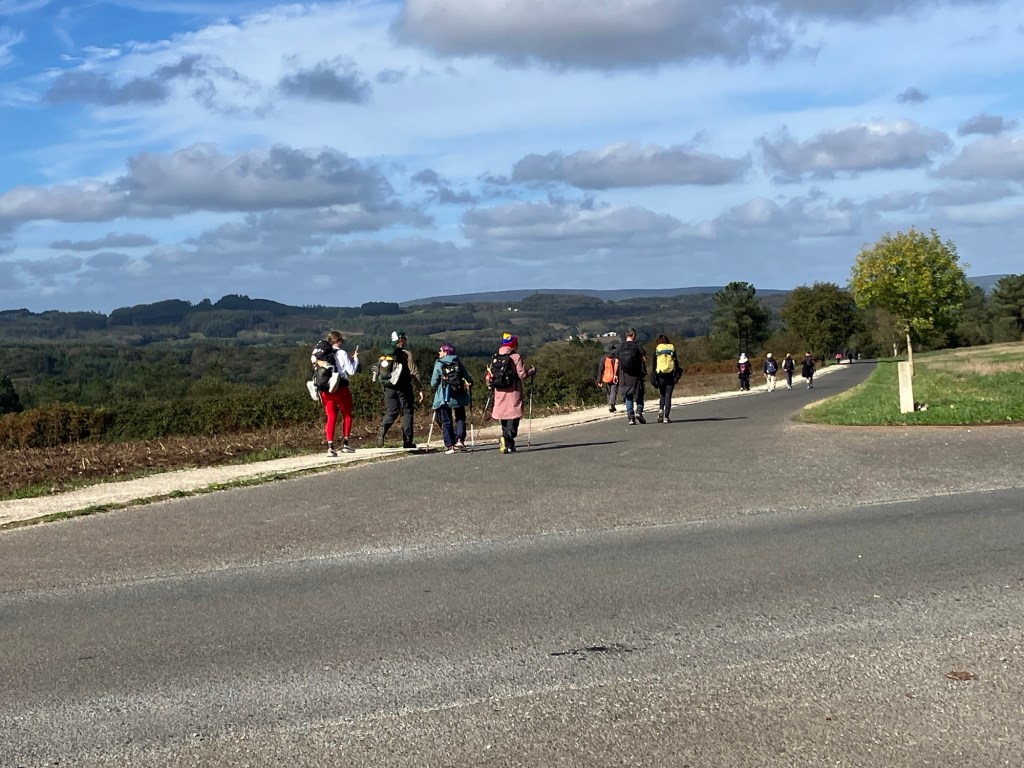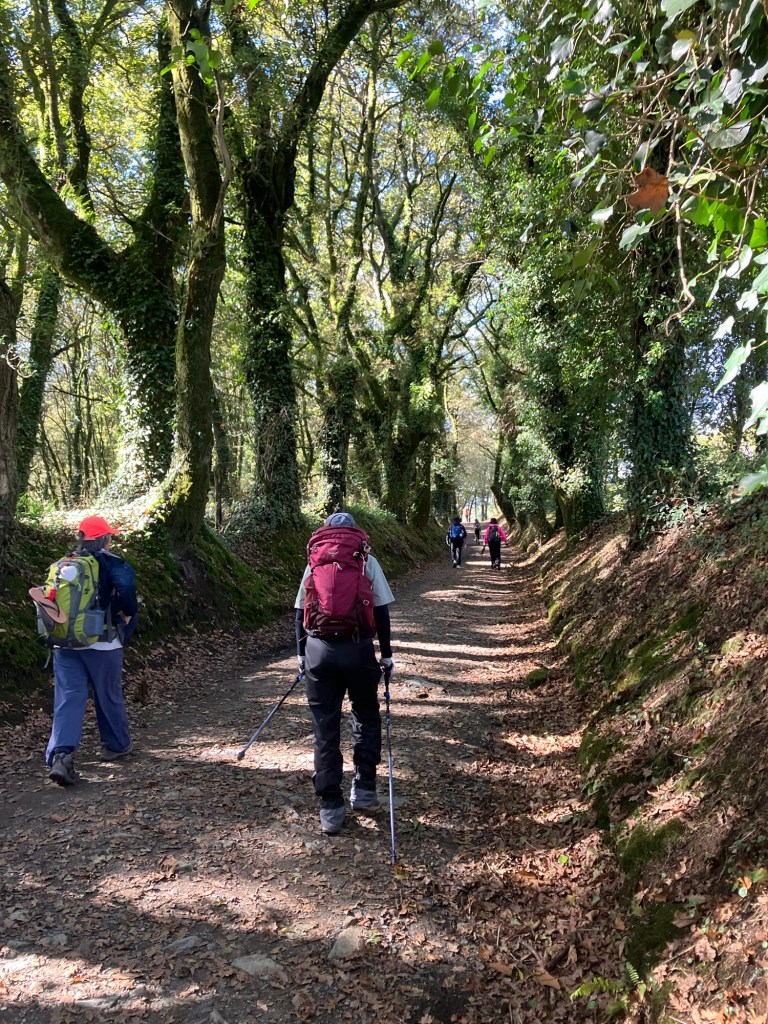 The trail gets four out of five stars today. Once again, the best parts were in the oak, chestnut or eucalyptus forests or on the hilltops with fantastic views.  The tracks along the side of quiet roads were not too bad and the trails next to busier roads were infrequent. The places to eat, however, were a little trickier. The first one we reached was at the 9km mark and we were fortunate to arrive when we did. We found Poh inside and she said she had been there 15 minutes and it was empty then.  We had a queue of about eight pilgrims in front of us to order food.  About 15 minutes later, the queue was about 20 pilgrims and the queue for the toilet was at least ten people long.  It’s crowdy out here!