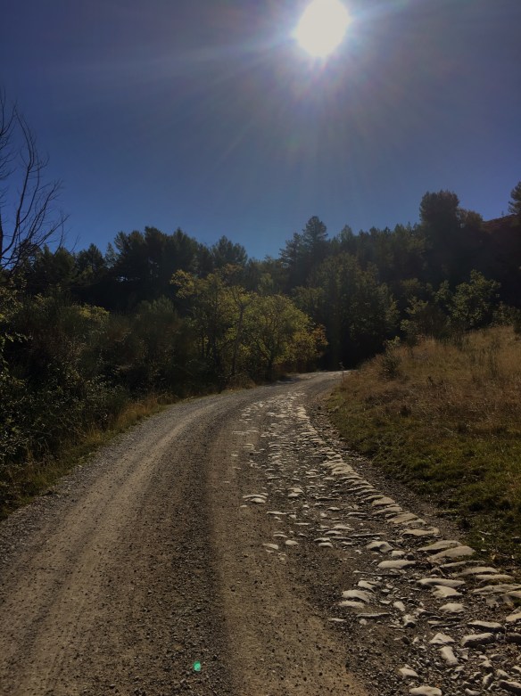We followed his directions which happened to be a portion of the GR route we were going to do anyway. Shortly after the center of Saint-Donat, we were walking down a stone and gravel path when we were surprised by a bicyclist pulling up next to us. It was the same man who stopped us earlier! He had gone home, parked his car, got out his bike and helmet and came after us. He said he was glad we followed his directions and then gave us a new set of instructions. “At the cairn, turn right, do not go straight, you must follow the GR signs”! Who was this guy? Was he one of the alpinists who marked the GR trail? Again, we thanked him and he wished us a buen Camino.