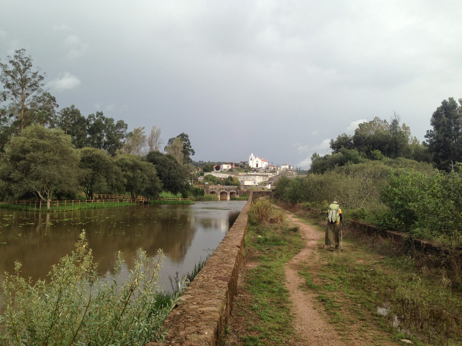 It was supposed to be an easy 18km day today but it didn’t work out that way. We never were lost but we ran into a few challenges along the route. First was the rain. It only drizzled off and on from Serem de Cima to the outskirts of Albergaria-a-Nova but it was enough to make us keep our raincoats on. Walking in raincoats means that you get soaked with sweat instead of rainwater but at least your backpack stays dry. The rain also meant that many of the trails in the forest had large sections of flooded paths. It was obvious that pilgrims before us had bashed through the undergrowth to get around the floodwaters, so we followed suit. When the drizzle stopped about 20 minutes before we reached our destination, I don’t mean it suddenly got sunny. In fact, the skies opened up and dumped everything they had on us. It was cold, stinging and drenched us to our marrow (we were already drenched to the bone).