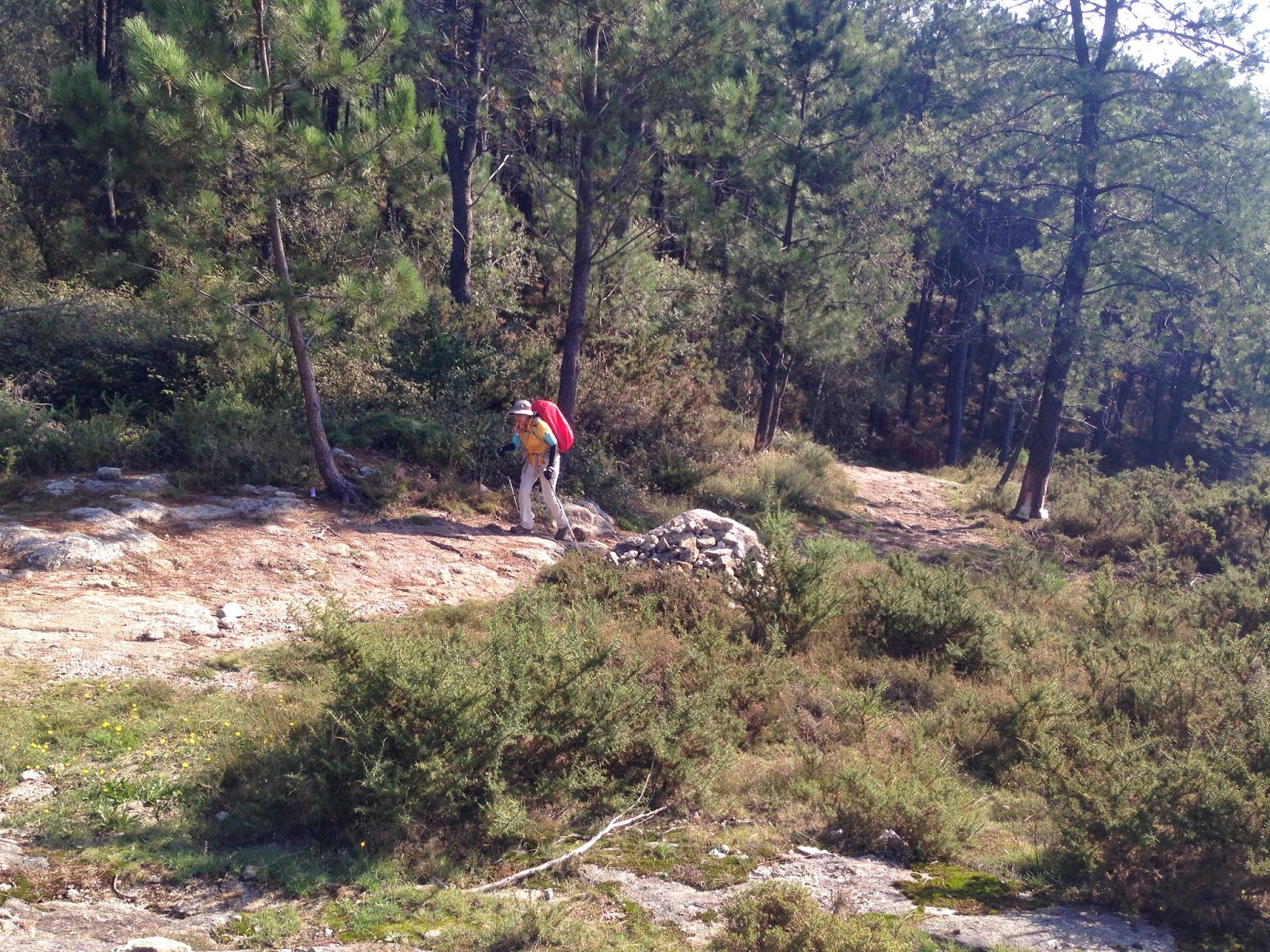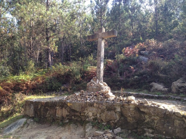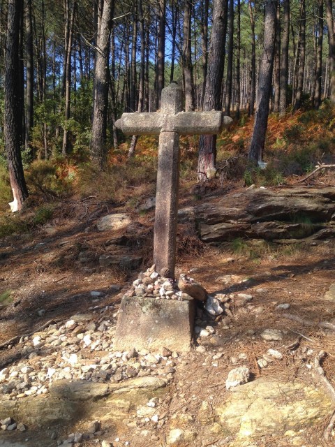 For those of you who have already done this walk, I bet you are surprised that the hill only gets mentioned in the third paragraph. Yes, there was a tough climb of about 250m over 2.5km but it wasn’t so bad. The morning was still chilly at the start and much of it was shaded. We got to do much of the scramble up the rocks with a vocal group of Portuguese mountain bikers. They were carrying their bikes most of the way which made me wonder “wouldn’t they be happier on an easier trail”? Two other points of the climb to mention where the Cruz do Mortos (a cross memorial to some of Napolean’s troops who were ambushed there). It’s not quite as moving to see as the Cruz de Ferro on the French Route, but it is historical. Another cross further along the trail should be considered nicer but not since sometime last month when an arse with a chisel decided to carve his initials (A.F.C) into the base. Prick. Also, just before the summit is the ranger’s station with a nice view of the valley to the south. Behind the station is a fantastic well with lovely, fresh cold water. Sort of. It seems to be collected in a large concrete tub and it fountains out of that. We tried it at the insistence of the bikers and it was very refreshing. As we left, we told some new arrivals about it and they went up to have some too. I saw one of three later, an American lady, who said that by the time she got there, the two other guys were dunking their arms in the tub and threatening to climb in. Yummy.