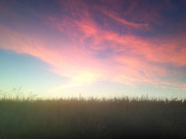 Sunrise over the cornfields before Golega. We often left just before sunrise to enjoy walking in the coolness as well as seeing the sun rise. |