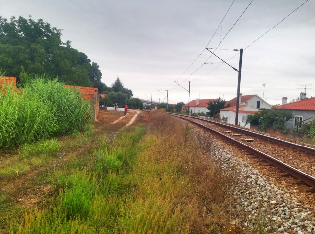 The walk today was supposed to be through forest tracks for the first half but after checking up and down several paths near the start, we gave up. The guidebook said it was going to be hard to follow and it was right. We saw several X’s where we were not supposed to go but the other trails had no arrows or marks that we could find. Figuring out which was the right one proved impossible for us so we gave up and walked the parallel road to Asseiciera. The road was very busy but almost always had a wide enough shoulder that I was not worried. You still have to be very vigilant though. After rejoining the Caminho (and eating breakfast) in Asseiciera, dark clouds started to move towards us. I think it was because I put the sun screen on at breakfast. By the time we passed under the highway near Guerreira, it was drizzling. Along the railroad track, it started to come down a bit harder. The trail then took a new route into town through some small village but we also passed a dilapidated farm that proved to be the perfect place to put on the rain gear. As we walked out of there, the heavens opened up and baptized us a thousandfold.