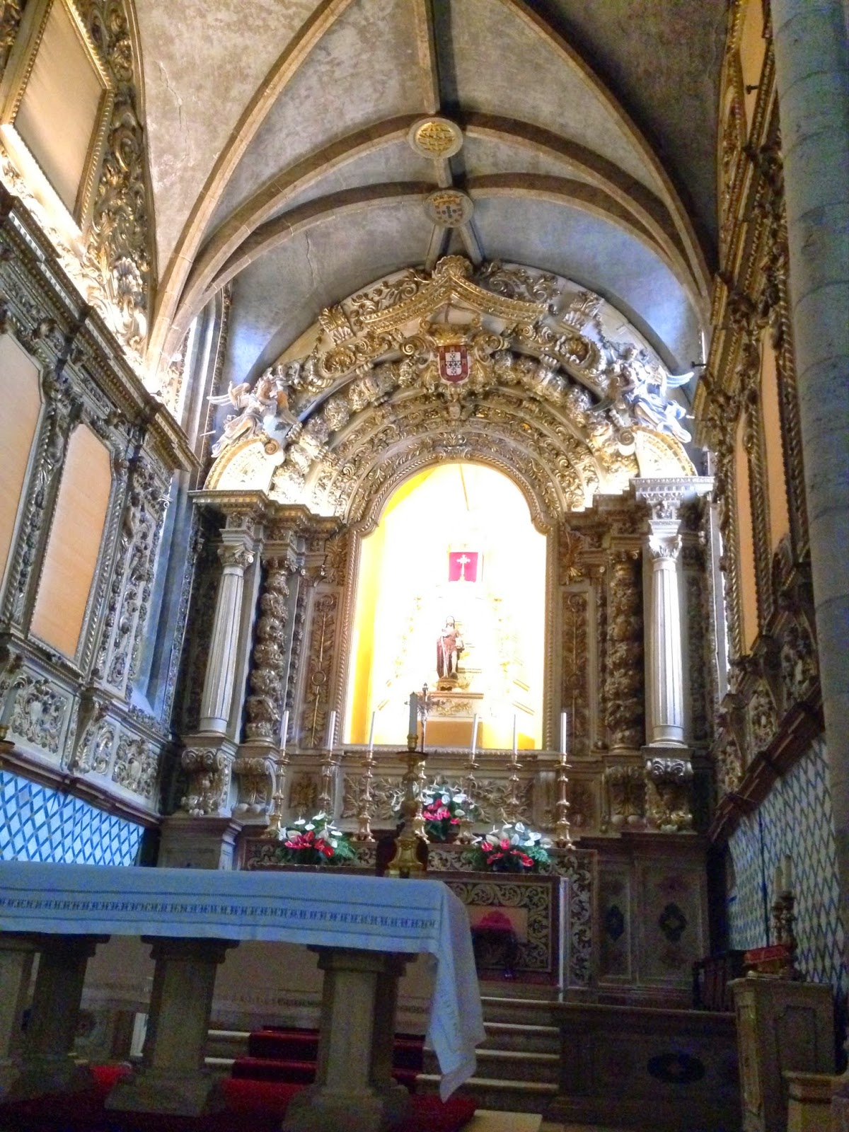 On the porch of the 16th century San Lourenço chapel, we rested for a while to snack and let the rain abate before the final bit into central Tomar.